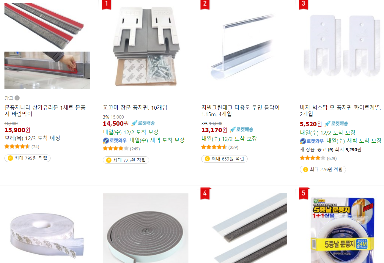 창문에 뽁뽁이를 붙이는 것보다 더 큰 효과를 볼 수 있는 것 중 하나가 창문 틈을 잘 막아주는 것입니다. 창문 사이로 들어오는 바깥공기가 생각보다 정말 큽니다. 인터넷에 창문 틈막이, 창문 틈새막이 패드 등을 검색해보시고 쇼핑몰에서 구입하셔도 되고 오프라인에서는 이맘때쯤 다이소에서도 방한용 제품들 쉽게 구입할 수 있더라고요.
