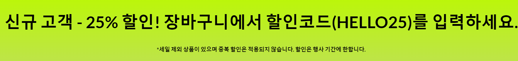 모든 할인코드는 정해진 기간 동안에만 사용가능하며 중복할인이 불가하거나 세일 제외되는 품목이 있을 수 있습니다.
