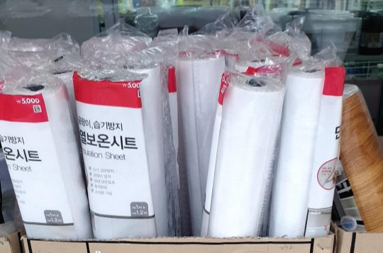 곰팡이, 습기방지용 단열 보온시트입니다. 한기 차단을 위해 많이 사용하는 제품 중 하나가 폼블럭인데 폼블럭에 비해 상당히 깔끔하고 두께도 얇은 편입니다.