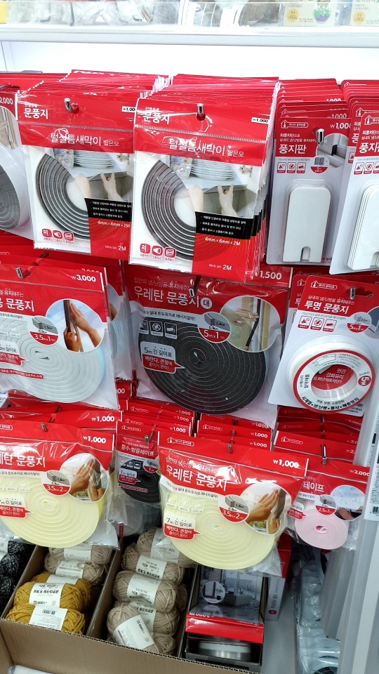 다이소에는 정말 다양한 종류의 방한용품들이 있고 대부분 쉽게 설치가 가능한 제품들이 많습니다. 가격대비 효율이 높은 제품들이 많은 것 같아요. 매해 새 제품으로 바꿔주어도 부담되지 않는 금액들입니다.