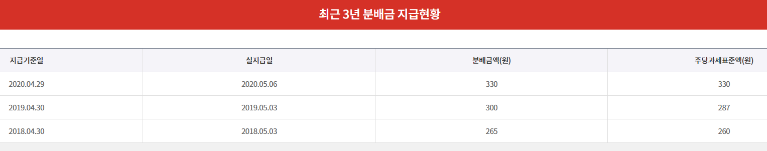 지급기준일은 매년 4월 말, 실지급일은 5월 초에 분배금이 지급되었네요. 현재 주가는 6000원 초반대를 형성하고 있습니다.