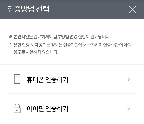 이후 본인확인을 완료하면 납부방법 변경 신청이 완료됩니다.