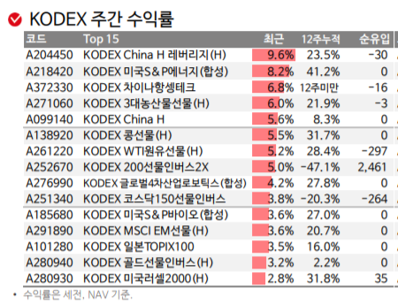 KODEX ETF 주간 수익률에 관심 있는 분들은 아래 표를 참고해 주세요~