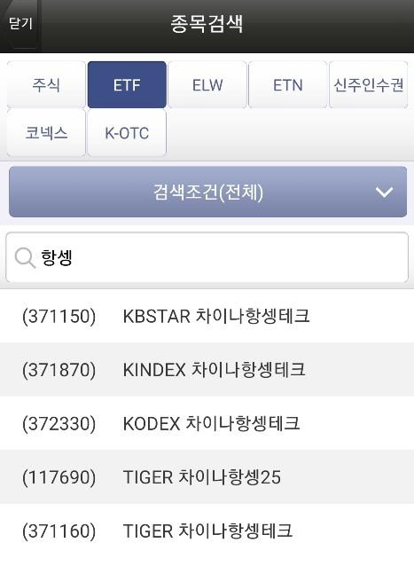 영웅문 S 어플에서 ETF 조회하는 화면입니다.