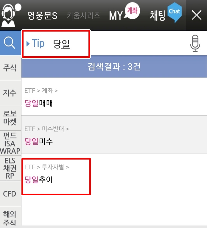 여기에서 <당일> 혹은 <당일 추이>라고 조회해 주세요.