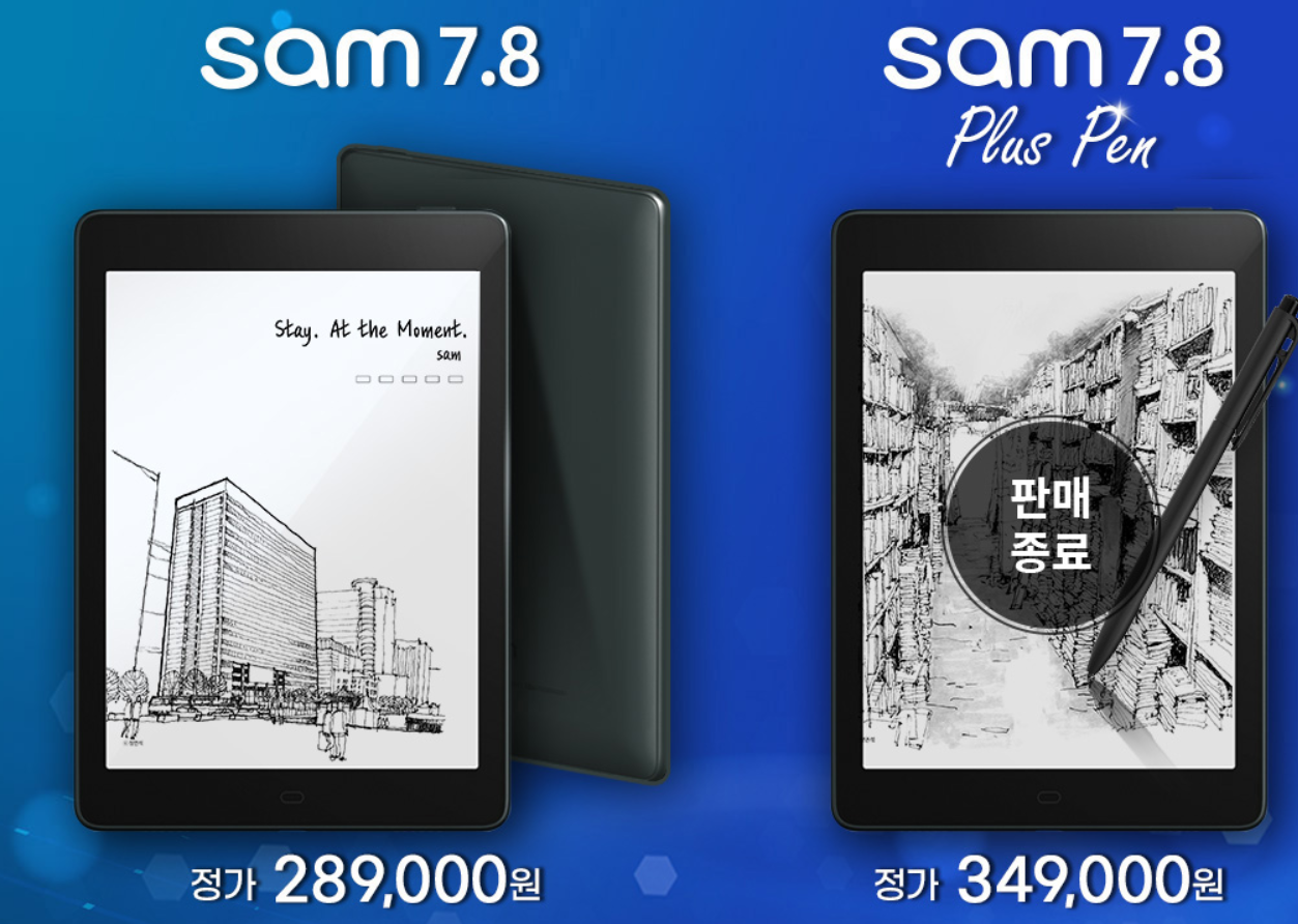 이전에 타 브랜드 전자책 단말기를 구입하기 위해서 여러가지 종류를 직접 만져보고 비교해 봤는데 개인적으로 샘 7.8 단말기가 가장 마음에 들었습니다. 현재 한 달 넘게 사용 중인데 굉장히 만족하고 있습니다.