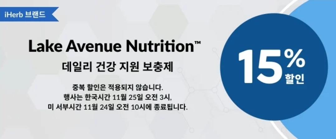 - 아이허브 브랜드 레이크 에비뉴 뉴트리션 15% 할인