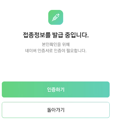 네이버 역시 업데이트를 진행하면 접종정보를 발급하기 위해 본인인증이 진행됩니다.