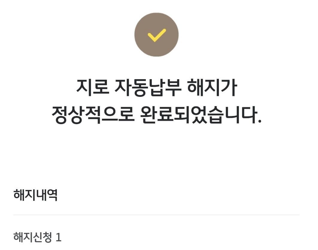 정상적으로 해지신청이 완료되면 위 화면과 같이 지로 자동납부 해지 처리내역을 확인하실 수 있습니다. 또는 자동납부 조회 화면에서 해지내역 및 전체 내역을 조회해보시면 신청 및 진행 사항을 확인할 수 있습니다.