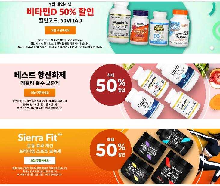 이번 프로모션은 한국시간으로 7월 22일 오전 2시에 종료될 예정입니다. 비타민d 50% 할인행사에는